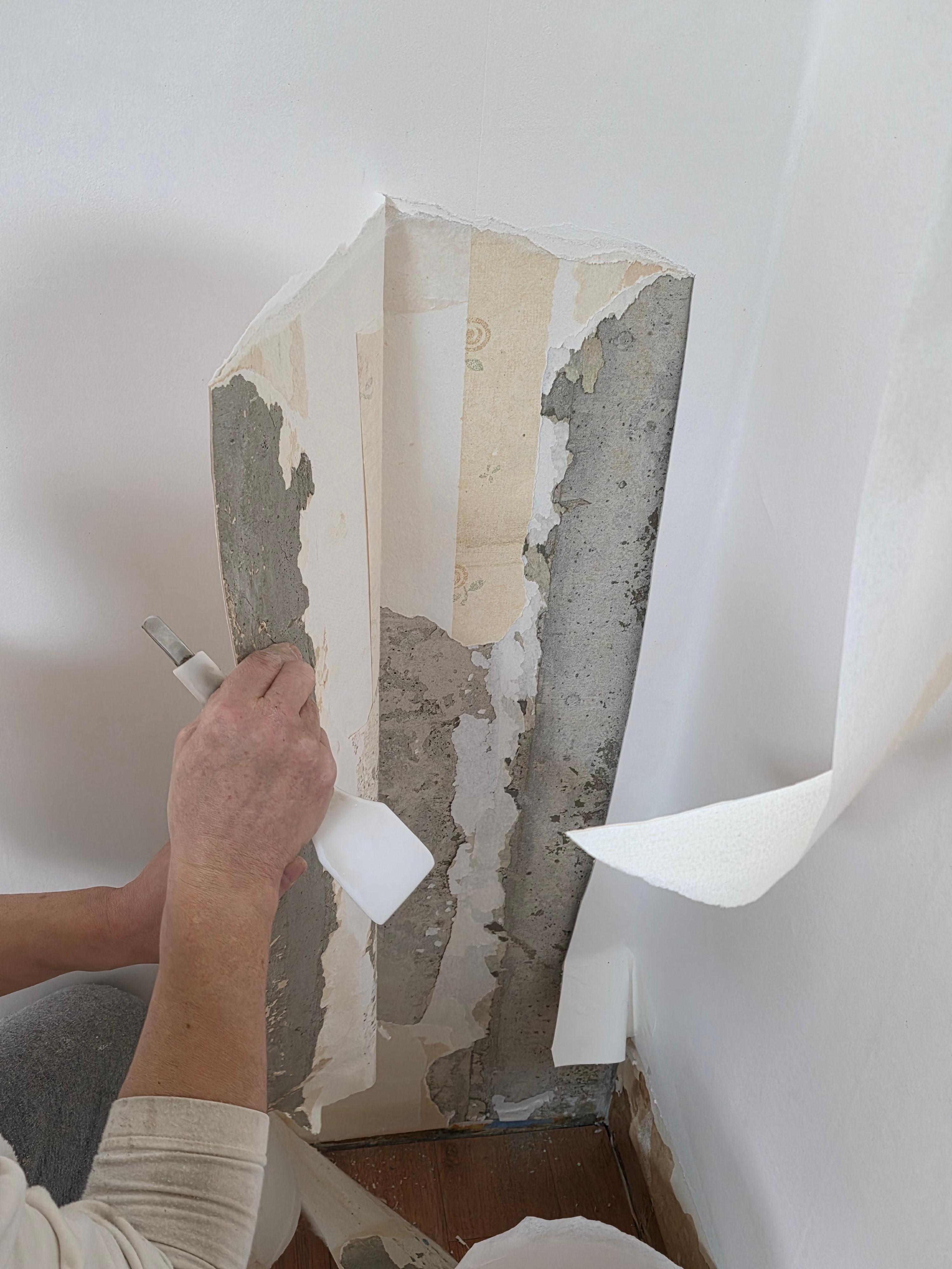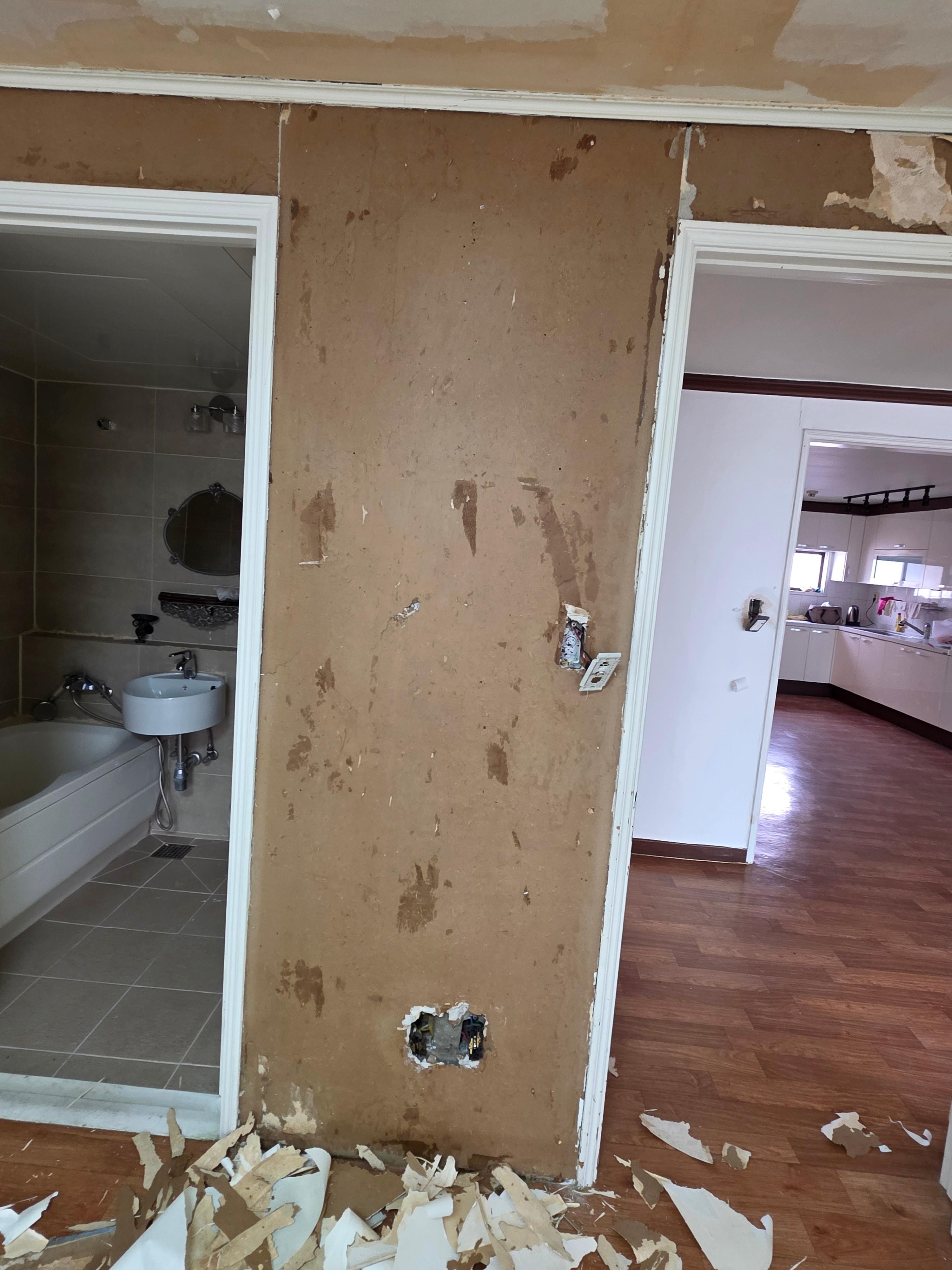 ②편. 기존 벽지 제거 중 발생한 문제, 석고보드와 시멘트가 드러나다