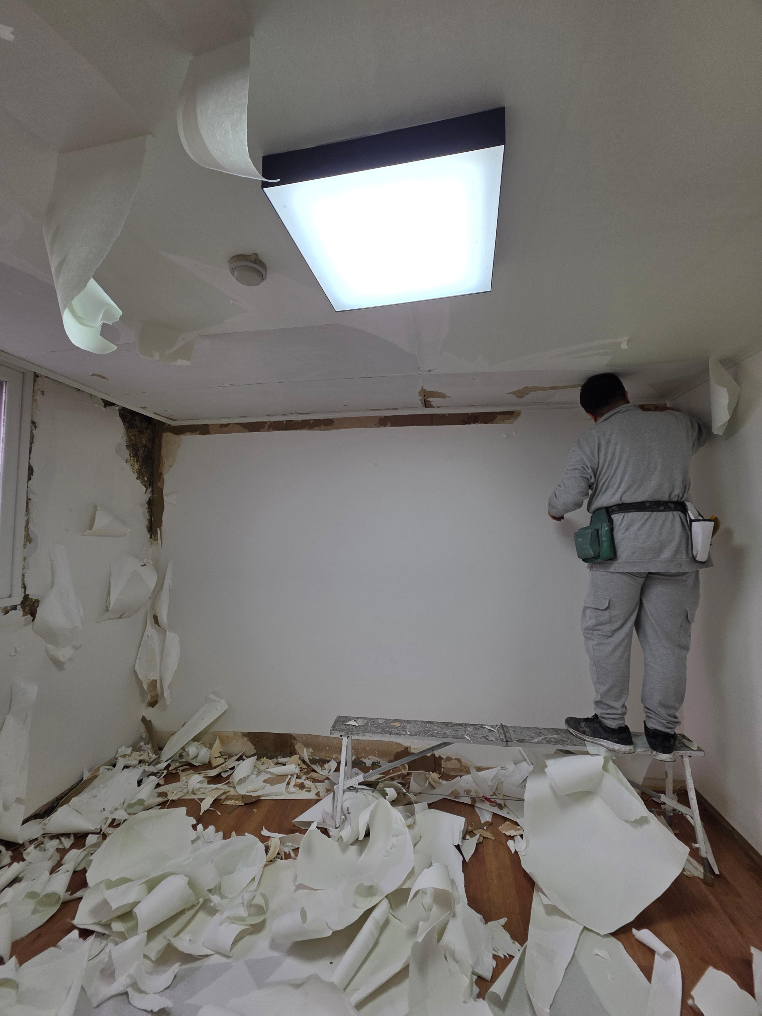 기존 벽지 제거 작업은 단순히 낡은 벽지를 떼어내는 과정이 아니라, 현재 벽 상태를 정확히 확인하는 매우 중요한 단계입니다. 이번 현장에서도 벽지를 제거하며 석고보드 이음부, 시멘트 보수 흔적, 이전 공사의 흔적들이 하나씩 드러났습니다. 만약 이 과정을 생략하고 덮방으로만 도배를 진행했다면, 겉보기에는 깔끔해 보일 수 있으나 시간이 지나며 들뜸이나 갈라짐, 곰팡이와 같은 문제가 다시 발생했을 가능성이 큽니다. 집주인께서도 제거 과정을 직접 확인하시며, “겉으로는 알 수 없었던 문제들이 이렇게 많을 줄 몰랐다”며 기존 벽지 제거의 중요성을 충분히 공감해 주셨습니다.