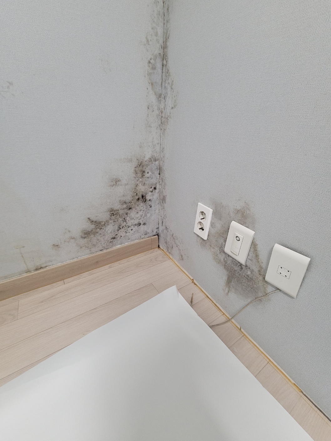 현장 점검 결과, 가장 큰 원인은 외벽 쪽 외풍과 단열 부족이었습니다. 외부의 찬 공기가 벽체를 통해 실내로 전달되면서 벽면 온도가 낮아지고, 이로 인해 실내 습기가 벽에 맺혀 결로가 발생하는 구조였습니다. 이러한 상태에서 일반적인 도배만 진행할 경우, 시간이 지나지 않아 다시 곰팡이가 생길 가능성이 매우 높습니다. 그래서 이번 용인시 수지 한화아파트 현장에서는 곰팡이 제거 작업을 꼼꼼하게 진행한 뒤, 결로 완화에 도움이 될 수 있도록 텍스 작업을 기존보다 두껍게 보강하는 방향으로 시공을 계획하였습니다. 벽의 차가움을 줄이고 표면 온도를 안정화시키는 것이 이번 공사의 핵심이었습니다.