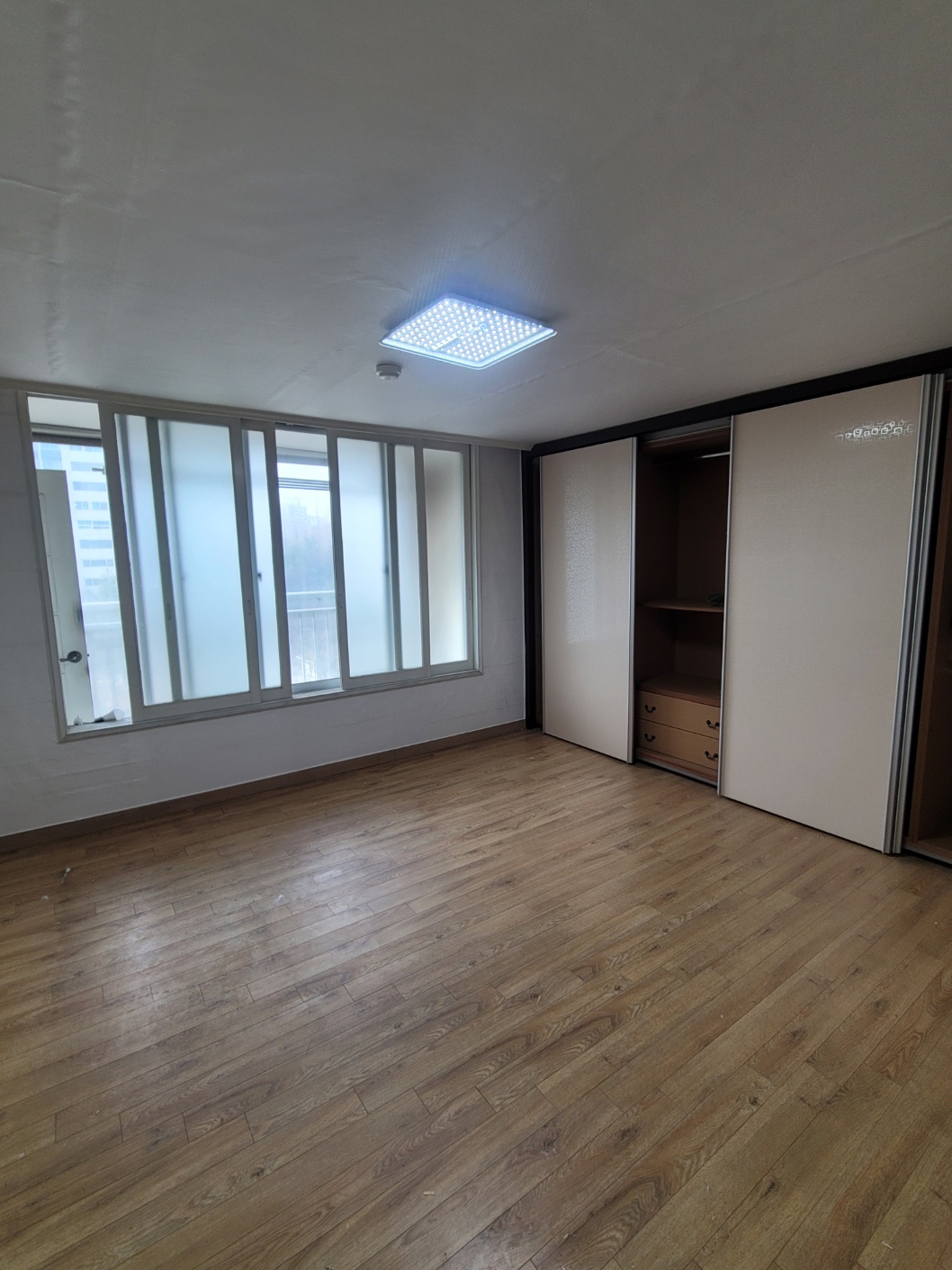 벽지 제거 후 바로 도배를 진행하지 않고, 택스 초배 작업을 통해 벽면을 한 번 더 정리해 주는 과정을 거쳤습니다. 이 과정은 벽면의 미세한 요철을 보완하고, 이후 시공될 합지가 안정적으로 밀착될 수 있도록 돕는 중요한 단계입니다. 초배 작업 후에는 벽면 상태를 다시 한 번 점검하여 들뜸이나 울림이 발생할 수 있는 요소를 사전에 차단하였습니다. 이렇게 기초를 단단히 잡아준 뒤, 전체 공간에 광폭합지를 사용하여 도배를 진행함으로써 시공 속도와 마감 품질을 모두 만족시킬 수 있었습니다.