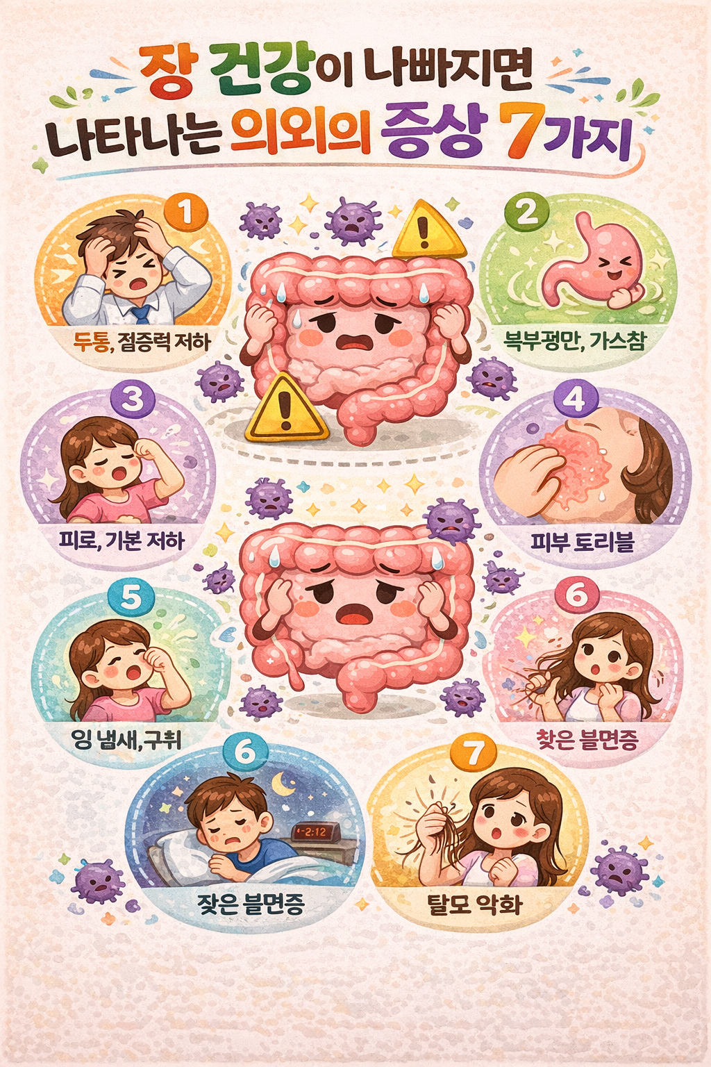 | 장 건강 시리즈 ①장 건강이 나쁘면 나타나는 의외의 몸 신호 7가지 (0) | 2026.03.08 |